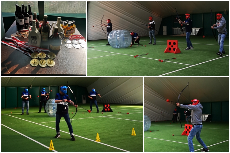 - 2 drużyny równocześnie walczą na turnieju łuczniczym.