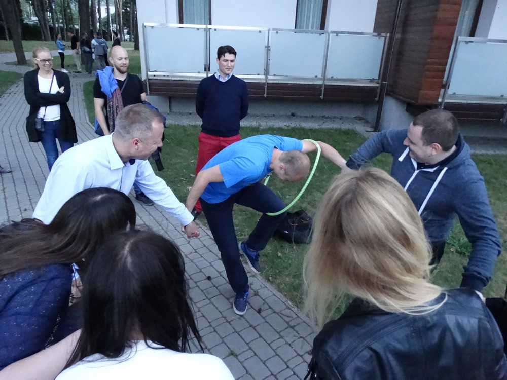 Wieczór minął w atmosferze rywalizacji, rozgrywki w bubble football, sprawdzian w alkogoogle, malarz i hula hop czyli „wyginam śmiało ciało”. Rozgrywki w bubble football przyciągnęły drużyny i wspaniały doping, po eliminacjach daliśmy odetchnąć drużynom i przenieśliśmy rywalizację na inne pola. W czasie zawodów w alkogooglach widać było zaangażowanie i hart ducha, malarz to nic innego jak wspaniała komunikacja i ostatnia konkurencja hula-hop była dopełnieniem uśmiechu wśród zawodników. Następnie wróciliśmy do rozgrywek bubble football po zaciętych półfinałach drużyny rozegrały mecz o pierwsze miejsce.
