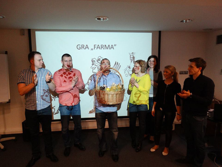 W dniu dzisiejszym przeprowadziliśmy dla Gości Hotelu Tobaco – grę strategiczno-handlową Farma. Już od samego początku goście bawili się wyśmienicie. Początkowy quiz był wstępem do wyśmienitej zabawy a bonusowe pytania z zakresu szkolenia wprawiły uczestników w zakłopotanie. Jednak spotkanie firmowe przyniosło zaplanowany skutek i uczestnicy poradzili sobie z nimi bez problemu. Po pierwszej części i zgromadzeniu gotówki nadszedł czas na inwestycje. W co zainwestować? Co przyniesie największy dochód na koniec zabawy? Tego akurat nie możemy zdradzić ale możemy powiedzieć, że uczestnicy gry poradzili sobie doskonale.