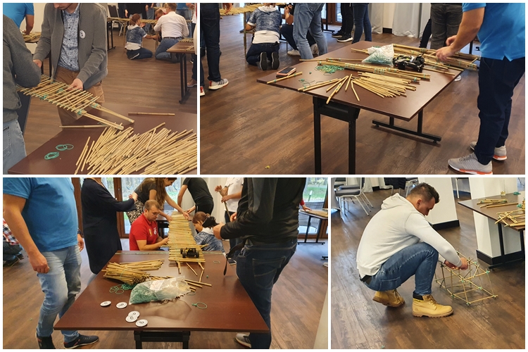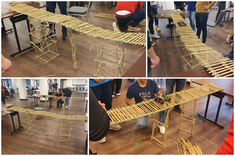 Cztery grupy rywalizują w dwóch przedsięwzięciach – budowa mostu w naszym konstruktorze oraz pokojach zagadek.