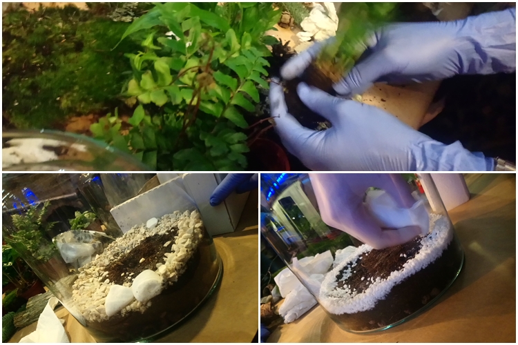 W czasie warsztatów, każdy uczestnik własnoręcznie przygotowuje las w słoiku. Najpierw odrobina ziemi, kamienie i znowu ziemia, następnie sadzimy rośliny dbając cały czas o czystość słoika…
