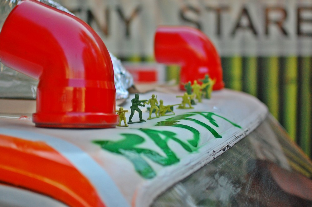 Farby w spraju, kartony, taśmy, rury i rurki i masę innych niezbędnych gadżetów.