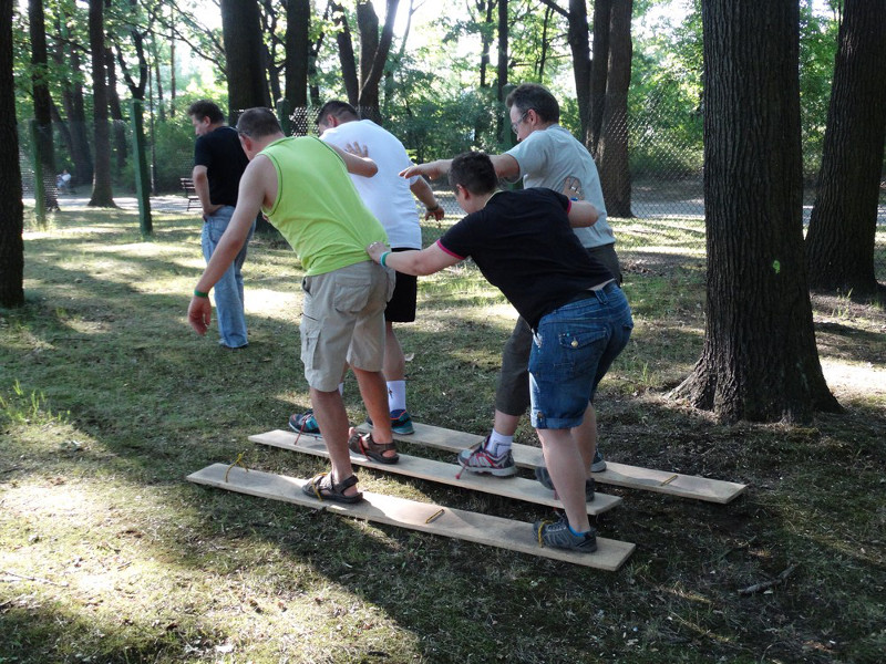 Dzisiejszy piknik w Łodzi zorganizowany był dla pracowników firmy Hutchinson. Pogoda i humor dopisywał jego uczestnikom. W czasie pikniku przeprowadziliśmy już dobrze sprawdzoną i cieszącą się dużym zainteresowaniem wśród uczestników olimpiadę. Zespoły sześcioosobowe rywalizowały ze sobą w czasie trwania pikniku, mając do zrealizowania dziesięć zadań. Nowością była konkurencja „Reje”, tu zawodnicy wykazali się mega odwagą i zręcznością. Integracja, zadowolenie i radość w czasie realizacji zadań to nieodzowne elementy naszych zajęć. Dla każdego zespołu czekały pamiątkowe dyplomy a dla zwycięskiej drużyny bardzo atrakcyjna nagroda.