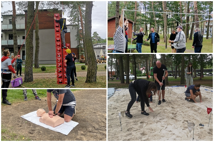 Wśród pięknych terenów hotelu widać było grupy uczestników, które z pełnym zaangażowaniem pokonują kolejne etapy naszego szkolenia.
