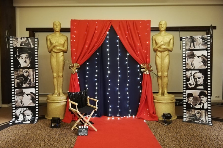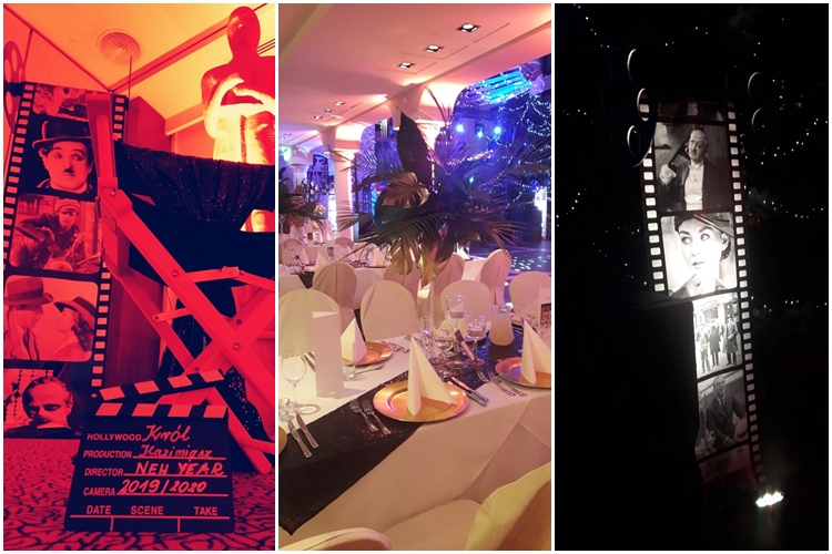 Kolejny Sylwester w pięknym Hotelu w Kazimierzu Dolnym. W tym roku charakter Sylwestra to Wieczór Hollywood. Dzięki naszym dekoracją stołów oraz dodatkom w postaci foto ścianki z ponad 2 metrowymi Oskarami czy mega szpulami filmowymi, czerwonym dywanem i innymi atrybutami filmowymi doskonale dopełniły tegoroczny Sylwester.