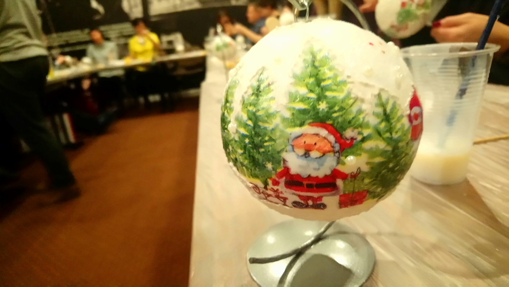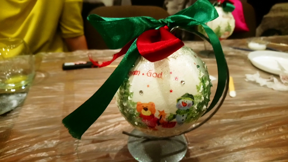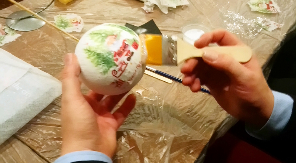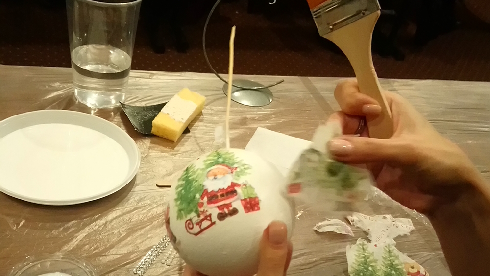 Dziś w ramach spotkania wigilijnego jednej z firm w Hotelu Stare Kino przeprowadziliśmy Warsztaty decoupage o tematyce świątecznej. Uczestnicy własnoręcznie przygotowywali bombkę i przyozdobili ją według wskazówek naszego prowadzącego.