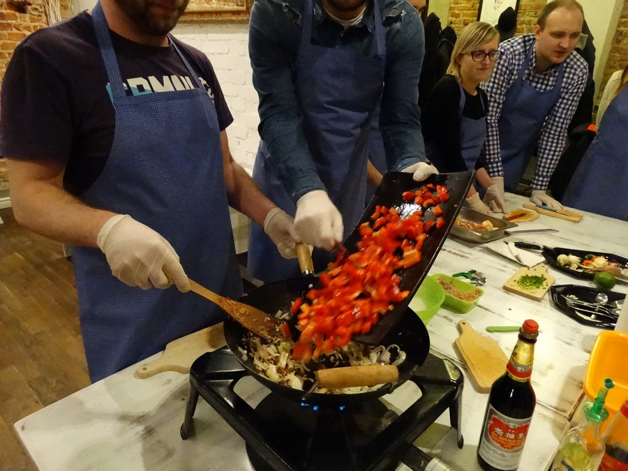 Nasi goście mieli okazję pod okiem naszych kucharzy przygotować a następnie spróbować przygotowane przez siebie potrawy. Dziś królowała kuchnia tajska.
