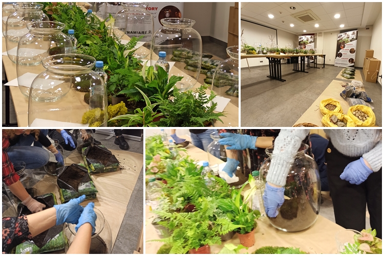 Od godziny 17:30 nasza niezastąpiona instruktorka wprowadza ich w arkana tajemnic świata roślin i pod jej czujnym okiem powstają w 13 słojach małe dzieła sztuki – miniaturowe ekosystemy lasu, które potem powędrują do domów swoich właścicieli.