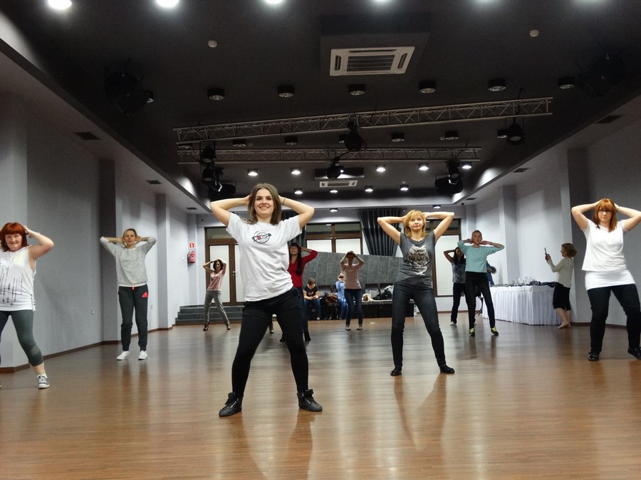 Na warsztatach Zumby uczestnicy bawili się doskonale był śmiech, skupienie na krokach i animacjach oraz ogólnie panująca radość.
