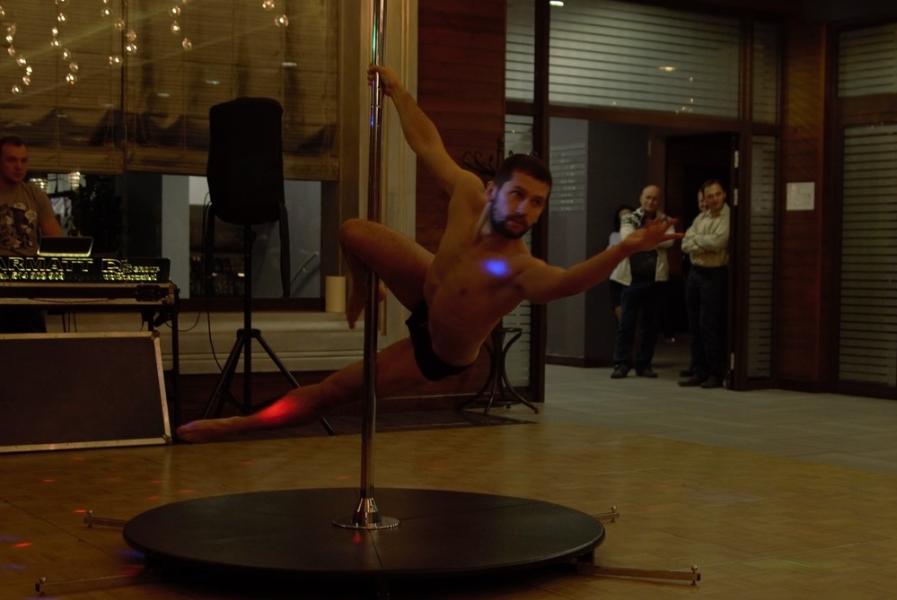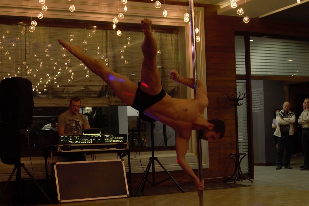 Pokaz Pole Dance zaprezentowało dziś dwoje instruktorów. Na początku pokaz przedstawiła nasza instruktorka, która następnie poprowadziła dla kilku uczestników przyspieszony kurs Pole Dance. Panie mogły próbować swoich sił w różnych pozycjach gimnastycznych.