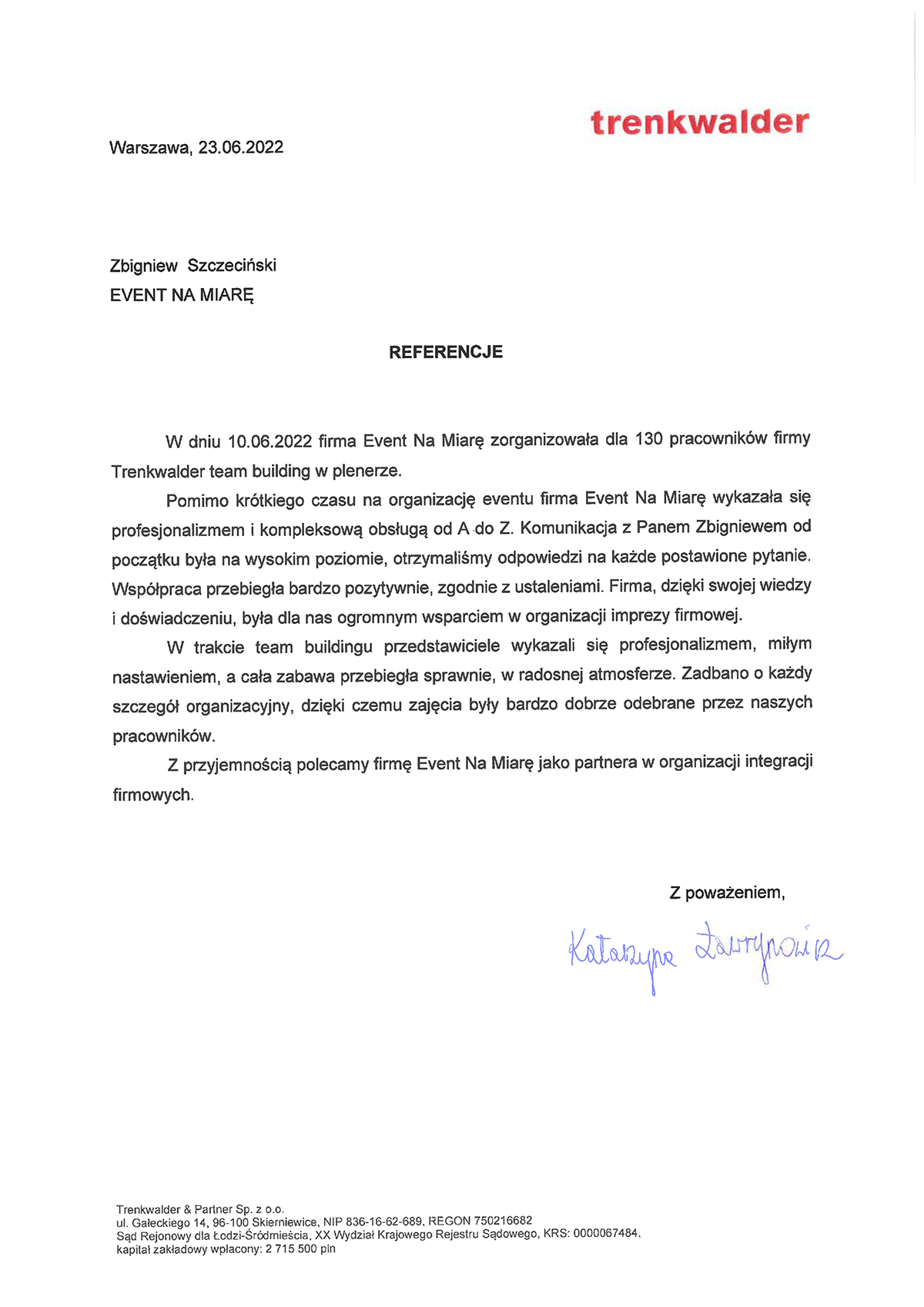 Zaufanie buduje się z eventu na event – a najlepszą wizytówką są słowa naszych klientów. Sprawdź, co mówią o współpracy z nami i poznaj firmy, które już wybrały Event Na Miarę.